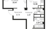 64.34 м², кухня – 12.58 м²