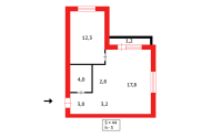 Квартира находится на 4 этаже, общей площадью 44,3кв.м, встроенная кухня-студия