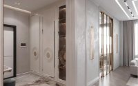 В квартире два полноценных санузла, высокие потолки, просторная гардеробная с прачечной, отдельная комната-жаровня, приточная вентиляция и кондиционирование в каждой комнате, теплые полы. Установлена бытовая техника Miele, сантехника Hansgrohe, отделка выполнена из крашеного МДФ и натурального шпона дуба. Мебель Lutra и Saloni. Встроена система защиты от протечек, магистральные фильтры воды, высокоскоростной интернет по всей квартире, видеонаблюдение Hikvision — парковка, лестничная площадка, внутренняя часть квартиры.