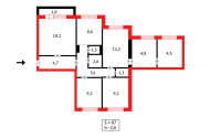 Квартира на 8-м этаже из 9 общей площадью 87 кв.м., кухня - 9 кв.м.