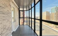 Балкон: просторная лоджия с панорамным остеклением, выход из кухни и спальни