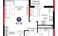 Продажа 1-комнатной квартиры, 43.32 м², ул. Е-429, дом 14