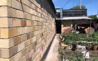Крепкий, кирпичный дом, крытый двор, на крыше шифер.