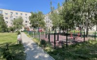 Аккуратный обособленный двор, установлены детская и спортивная площадки, лавочки, зелень.