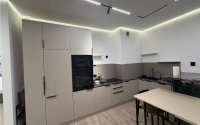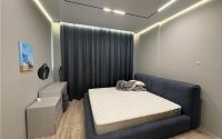 Квартира в стиле минимализм с кухней-студией, новой сантехникой и кондиционером. Спальня с большой кроватью, санузел в лофт-стиле, гардероб, умный дом, скрытые двери и трековые потолки. Дом у сквера.