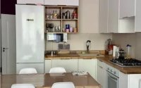 Кухня-гостиная и спальня. Совмещённый санузел. Частично меблирована. Остаётся техника и мебель. Есть гардеробная.