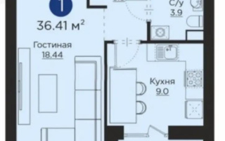 Продажа 1-комнатной квартиры, 39 м²