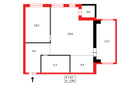 📐 Гостиная с кухней в формате студии 25 м², с балконом для кондера (можно использовать как кладовку)