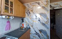Кухня облицована гибким пластиком.