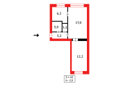 Продам 2х комнатную квартиру, кухня студия, планировка смежная, санузел совмещен, есть не большая кладовая.