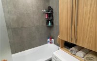 На полу в комнатах ламинат, на кухне и в санузлах керамогранит.