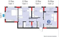 Высота потолков — 3 м, входная дверь 2,3 м с электронным замком от застройщика. Современный домофон с Face ID. Дом комфорт-класса.