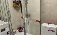Установлена душевая кабина, просторная ванная комната.