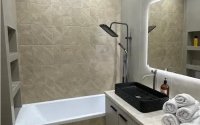 Сделан качественный ремонт, установлена современная мебель и техника — всё абсолютно новое. Есть удобная гардеробная и встроенные шкафы. Для безопасности — электронный замок Kaadas (стоимость 130 000 тг). Установлена сантехника FRAP и инсталляция Grohe.
