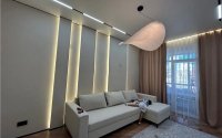 Продаётся квартира с дорогим дизайнерским ремонтом: двери скрытого монтажа, немецкий ламинат 33 класса, скрытый плинтус, инсталляция GROHE, полностью меблирована, техника в наличии.