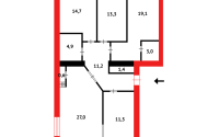 ▫ Площадь 107 кв м, кухня — 14 кв м