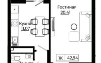 42.94 м², кухня – 12 м²