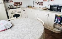 Из мебели останется кухонный гарнитур, диван, шкафы, стиральная машина и кондиционер.