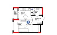 38 м², кухня – студия