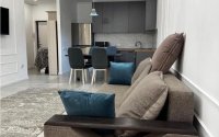 Квартира состоит из двух полноценных комнат. Встроенная мебель и шкафы, изготовленные на заказ, остаются. Установлен кондиционер, санузел оборудован душевой кабиной.