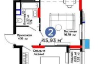 45.93 м², кухня – 6 м²