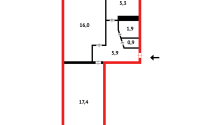 Общая площадь 47,1кв.м/кухня 5,9кв.м, окна на обе стороны.