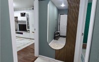 В квартире выполнен косметический ремонт, окна пластик, решетки на окнах, потолки натяжные, полы линолеум, трубы пластик, счётчики воды, новая входная и межкомнатные двери.