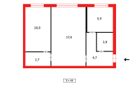 📐 Общая площадь — 43,5 м², кухня — 6 м².