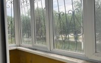 Окна пластиковые, застекленный балкон с решетками на окнах