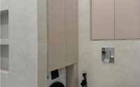 Кухня-студия с встроенной техникой (холодильник, плита, духовка, микроволновка, вытяжка, стиральная машина, кондиционер).