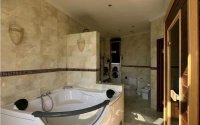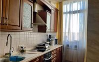 Встроенная кухня укомплектована качественной бытовой техникой. В хозяйской спальне — просторный санузел с душевой кабиной, ванной и электрической сауной. В доме работает лифт, двор тихий и ухоженный.