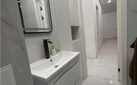 В квартире выполнен современный ремонт в стиле минимализм. Установлена качественная встроенная кухня с техникой, светлая гостиная, кондиционер, Face ID-доступ, видеодомофон с контролем всех входов, электронный замок.