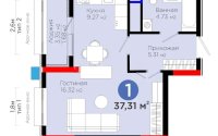 Продажа 1-комнатной квартиры, 37.31 м², ул. Рыскулова, дом 1/1