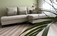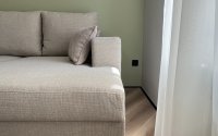 Ремонт с улучшенной перепланировкой (узаконена, см. фото тех. паспорта). Интерьер в спокойных благородных тонах. Балкон утеплённый, стеклопакет тройной (заменён); тёплые полы на балконе и в санузлах. Стены, выровненные под маяк, 2 санузла раздельных, высота дверей увеличена до 2,3 м., оконные подоконники из керамогранита, имеются все необходимые розетки, выводы для техники, разные сценарии освещения и подсветки для удобства, встроенная корпусная мебель, угловой раскладывающийся диван 2,3 м., обеденный стол 120х70 и 4 стула, настенная складная сушилка для белья, оконные жалюзи, шторы.