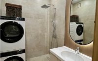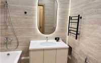 Пол — кварц-винил: износостойкий и влагостойкий. Установлены двери бренда «Волховец», сантехника — Grohe. Почти вся мебель изготовлена из крашеного МДФ. Квартира светлая, стильная и полностью готова к комфортному проживанию.