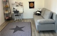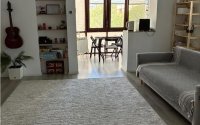 Квартира оборудована новой техникой (холодильник, стиральная и сушильная машины, микроволновка, аэрогриль) — всё на гарантии, приобретено в апреле. Мебель также новая: диваны и современный кухонный гарнитур с фурнитурой Blum. Кухня вынесена на балкон, что позволяет сохранить свежий воздух в жилых комнатах и избавляет от запахов готовки.