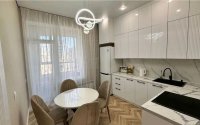Продаётся квартира с ремонтом, встроенная кухня, новая сантехника Grohe, полностью меблирована, техника и кондиционер остаются. Планировка распашонка, двери 2,3 м, мебель Dogtaş. Отличное расположение — рядом школа.