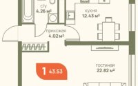 Продажа 1-комнатной квартиры, 43.53 м², пр. Рыскулова, дом 1 стр