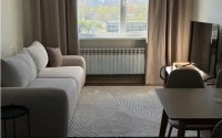 Продаётся светлая 2-комнатная квартира с новым дизайнерским ремонтом и мебелью. ЖК с охраной, видеодомофоном и подземным паркингом. Рядом ТРЦ, школы и детсады. Южные окна с видом на горы.