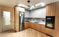 Большие окна с видом на горы наполняют квартиру светом и создают уютное пространство. Полностью меблирована, укомплектована новой техникой — всё остаётся. Установлены вместительные встроенные шкафы, духовая печь, микроволновка, кондиционер.