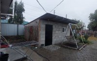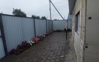 Дом был построен на участке 4.6 сотки. Есть хоз постройки, недостроенная баня, гараж, беседка. Участок огражден забором - профлист.