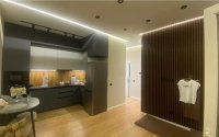 Улучшенная квартира-студия с новой сантехникой, встроенной кухней, кондиционером, в тихом районе, рядом университет.