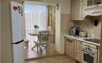 Объединена из 2-х и 1-комн., изолированные комнаты, два санузла, тёплые полы, панорамное окно, балкон 6,5 м. Дорогие материалы: ламинат, двери, кафель, лепнина. Большая гардеробная, кондиционер, водонагреватель.