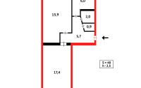 - Общая площадь - 47 кв.м. Площадь кухни - 6.