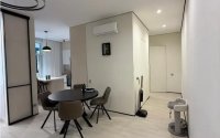 Изначально двухкомнатная, перепланирована в трёхкомнатную (все изменения узаконены). Новый дом сдан в эксплуатацию в прошлом году. Квартира с ремонтом из качественных материалов. Напольное покрытие — кварц-винил. Ровные стены, свежая отделка. Установлена кухонная техника Electrolux.