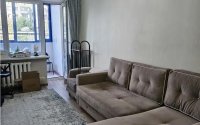Квартира-распашонка с новым ремонтом. В комплекте остаётся мебель и техника: угловой диван, кухонный и спальный гарнитуры, холодильник и стиральная машина.