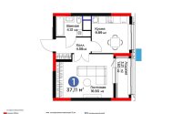 37.11 м², кухня – 10 м²