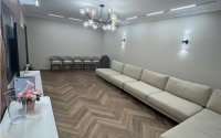 Продаётся просторная квартира в ЖК Rams City в престижном районе Алматы. Общая площадь 111 м², выполнен качественный евроремонт. В квартире просторная гостиная, две спальни и кухня-столовая, оснащённая современной мебелью и техникой. Панорамные окна открывают великолепный вид на город и горы, два санузла оформлены современным кафелем.