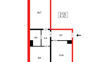 - Общая площадь 52 кв.м, кухня-10 кв.м