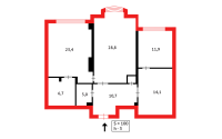 Просторная квартира 100 м² на 4 этаже 18-этажного дома бизнес-класса.